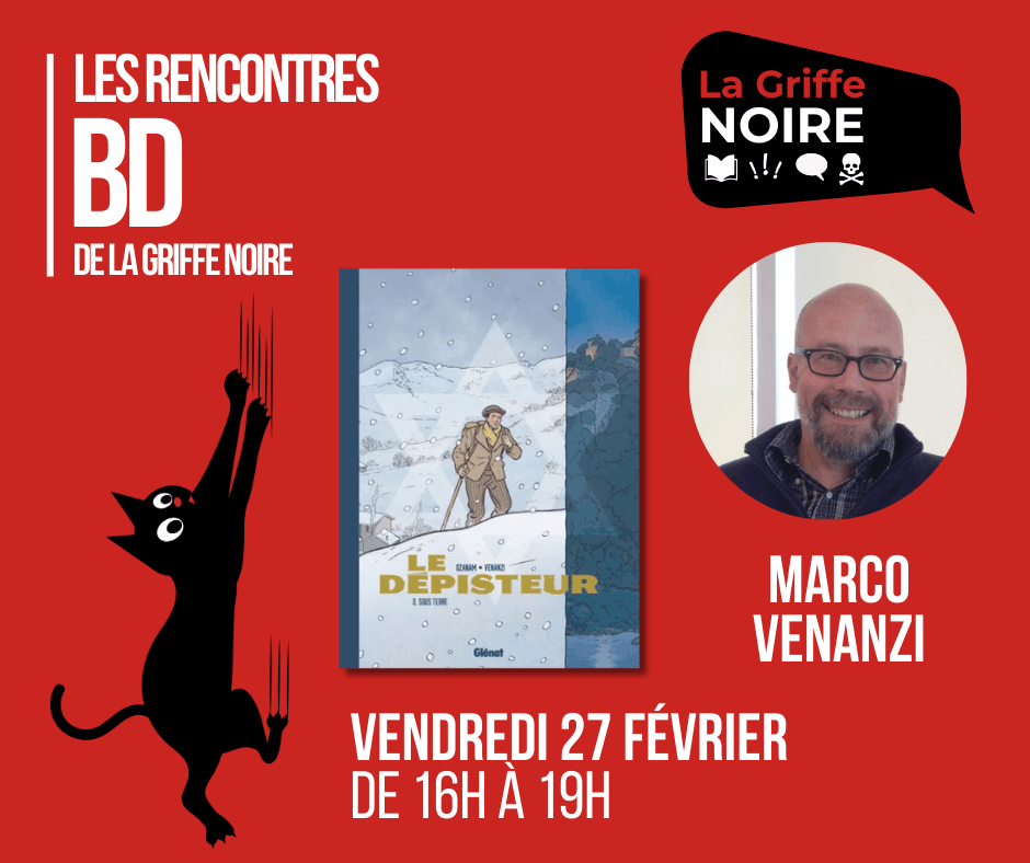 Nous vous invitons, dans le cadre des rencontres BD de La Griffe Noire 2026, à venir échanger avec le dessinateur Marco VENANZI qui vient vous présenter le deuxième tome de son album, "Le dépisteur", à paraitre en Février chez Glénat.